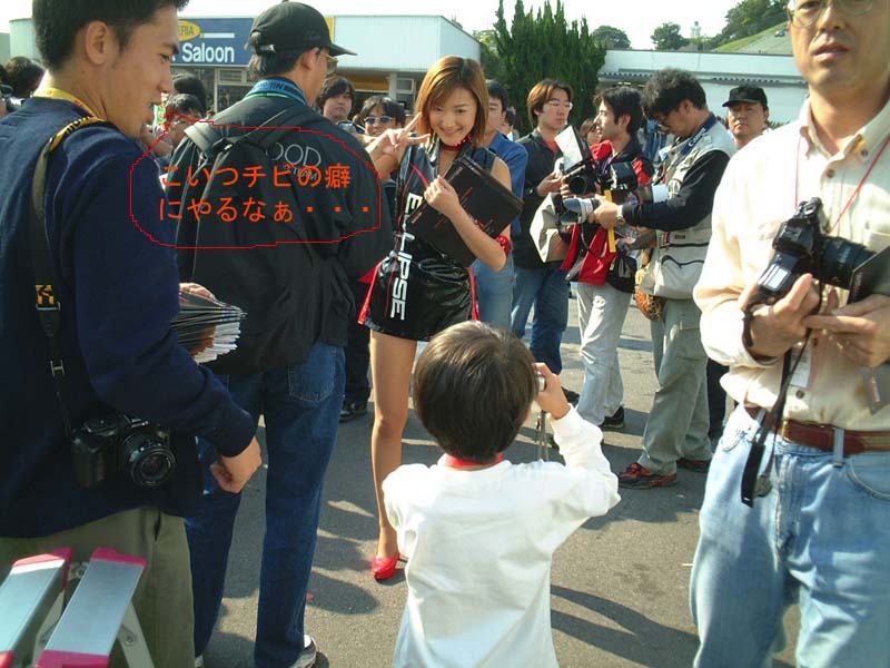 レースクイーンは教育上の問題もあり?子供やかみさんとは別行動での撮影であった。「ちょ、ちょっと行ってくるね、ね・・・・」 ところが息子も負けじとばかし撮っていたとは、後になって気がついたのさ。かみさんいわく「あんたの息子だねぇ・・・」、お父さんはうれしいぞ(泣 #1--#2--#3と見るべし。