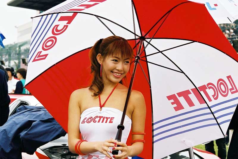 そして私は悟ったのだ。「今回はレースクイーンを撮らなくてはいけない!」いわゆる88年にセナが鈴鹿の空に見た"神"が私にも降りてきて、シャッターを押させたわけだ。2000年のF1にロックタイトさんからお呼ばれして、意気込んで出かけていったがレースクイーンはブリヂストンだけだった。しかしF1の翌々週に行ったJGTCの最終戦(鈴鹿)では、この世のものとも思えないものが・・・