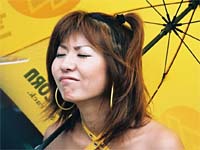 陽気なお姉さんは、左手を頭の上に置くのがお決まりのポーズなのでありまする