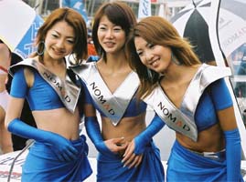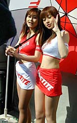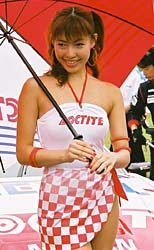 我がロックタイトはそのスポンサードをGT-R/ニスモからNSX/本田無限×童夢へと大きく体制変更だ。昨年そのキャラクターの良さから人気のあった(関係者談)レマちゃん(本名らしい)はニスモに残留、ロックタイトは新たに2人体制で臨んでいるぞ。 | ||||