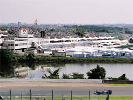 ◆逆バンクからグランドスタンド、パドック〜ピット〜民家とパースペクティブが効いていい感じ