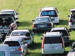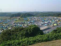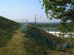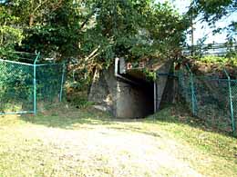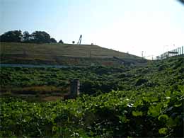 ◆そのトンネルをくぐらずおもむろに左側にある岡に登ってみました。そしてそこの眼下には駐車場と化した南コースが広がっています。