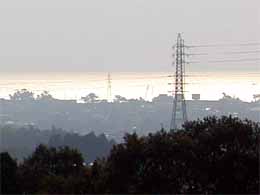 ◆先の岡の上から白子駅のほうを見ると海が見えます。朝の日に光る海がいい感じ。