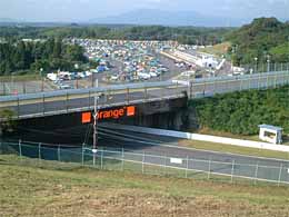 さて8時にサーキットゲートがオープンです。人の波をちょっとやり過ごしてから「いさ出陣」です。はじめのルートなので景観がえらく新鮮です。まあ早くグランドスタンドまで言ってみたい衝動を抑えて、めったに来ることの無い裏ストレートを見学です。