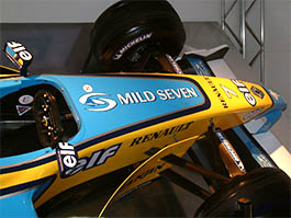 ルノーの両ドライバーからファンへの特別メッセージということで、ビデオを見た。それだけ。しかし前のブースでもそうだったが、プロモーションビデオは4:3を強制的に16:9にしている悪癖を踏襲しており、見てられないぞ。それに、画質もひどいものだ。これくらいのものを作るのならHDで撮んなきゃいかんですな。見ていて悲しい・・・