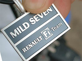 最後にも何かプレゼントがあるらしい。入ったときになんとなく目に付いたのだが、それはルノーオリジナルネックレスだった。チェーンでなく樹脂のストラップにちょっとかっこいいルノーのエンブレムがぶらさがっていた。お姉さん方もみんな首にかけており、ちょっと欲しかった。これは世界限定250個しか作っていないらしい。っていうか多分日本GPのノベリティーで作ったのだろう。