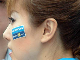 そして最後にカウンターに導かれ、フェイスシールを張るのを勧められた。これはさすがにマクラーレンのスポンサーであるロックタイトさんから誘われている手前、顔に張ってもらうわけにはいかず、ちょっと隠れる上腕に貼ってもらった。隠せているところにこういうのがあると、なっかちょっと秘密でうれしい感じだぞ。