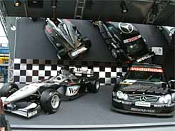 さてここまで見てきて、今年(2003年)の展示車が3年も前のMP4/15であることがよ〜くお分かりいただけただろう。しかし3年も前のマシンを使うなんて”ちょっとセコイ”と思うのは俺だけだろうか? 天下のマクラーレンなんだから、もっと気張って欲しいぞ。 さてここからはおまけ! | ||