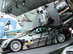 で、その数年前のマシンを恥ずかしげもなく出しちゃうのが、メルセデスのブースにあるマクラーレン。3年前のマシンを今風にステッカー変えて展示してあるのは、マニアが集まるF1では情けないものを感じちゃうぞ。まあマクラーレンは車のカラーリングも目立って変えていないから普通の人は分からないかもしれない、って踏んでたのかも。そういえば2年前のF1でも。当時で3年も前のかっちょ悪いマシンを展示してたもんなぁ。それはそうとして、同時公開って感じでドイツでメジャーなツーリングカー選手権、DTM車も一緒に展示してあった。メルセデスチームのDTMマシンには日本ではおなじみのALESIがドライバーだ。その箱車のカラーリングはかっちょいいぞ