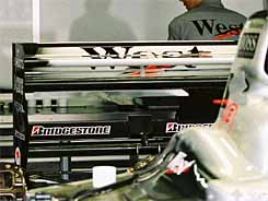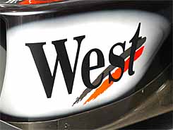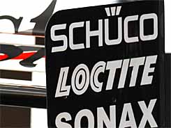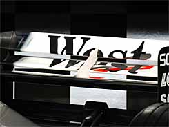 | タイトルスポンサーのWest様。タバコ規制が厳しくなっている折、いつ撤退されますやら。母体はリーツマー社(マイルドセブンのJTと同じ)。 | なんの意味か分からないけど、斜めのブラッシングの下部ってこんな感じなのだな。 | リアウイング・エンドプレートにはLOCTITEさんが輝く!の図。でも数年前は一番上だったんだけどなぁ・・・ |