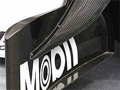 | 展示車のリアウイング。質実剛健な直線基調のもの。 | 今のトレンドは3Dウイングさ。この通りぐにゃぐにゃなのさ。 | これは2000年レース車のリアウイング。フラップが上にあるのは今年と同じだが、直線基調なのはまさに展示車と同じ。 |
