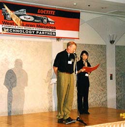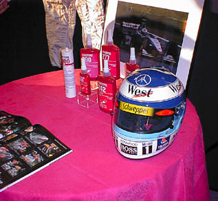 ここには見なれた雑誌も置いてあった。”F1Modeling”、マニアック君たちの欲求を満たすための雑誌だ。各マシンの細部が写真でバリバリ載っているのだ。ん、もぉ。こんな雑誌を待ってたのよ。以前模型誌の別冊で”クローズアップ・ヒストリー"なる雑誌/写真集があった。田宮模型のF1新製品に合わせた形で、細部を徹底的に見せてくれる写真集だった。最近は秘密主義のF1なので、なかなかこういう雑誌は出てこなかった。さてこのF1Modelingに、”ロックタイト製品はマクラーレンのマシンにこんなに使われている”って感じの、見開きのページがあった(上の画像参照)。買ったときにはえらく感激したのだが、パーティー会場にさりげ無く置いておくなんざぁ、パブリシティーうまく考えてるなぁ。