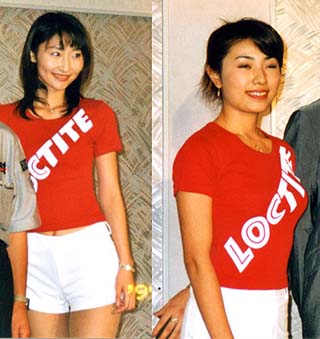 さて、会場を見まわすとロックタイトギャルがいるではないか。なんてスタイルいいのだろう?おお、へそが出ているぞ・・・へそ。しかし何でそんなに足が長いのじゃ?足は手術しても長くならないよね。この写真を見た某上司は