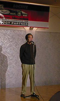 そうこうしていると、結婚式の式次第通りにいわゆる歓談後の”スピーチ”となった。まずはマクラーレンとテクニカルパートナーシップを結んでいる、ケンウッドの部長さん。