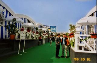 やっとの事で受付を済ませたら、M事業部長と藤沢さんが待っていた。すまんですたい、待っててくれたのね、ウフ。そして一緒に一番奥のマクラーレンのパドックに行く。しかし、このテントが乱立しているパドック・テント村はやけにきれいだ。F1のパドックはいわば社交場だからねぇ。
