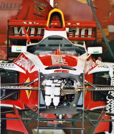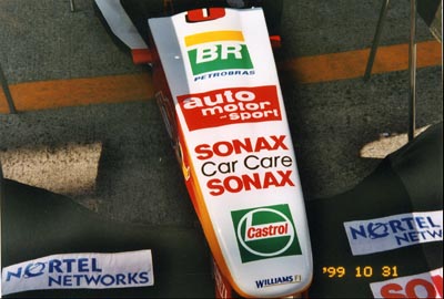 フロントノーズだ。前にも書いたが、ウイリアムズのカラーリングは何を言いたいのかさっぱり分からん。じぇんじぇ〜んカッコ良くない。このフロントノーズだって統一感のないデザインでしょ。”適当にスポンサーマーク貼っちゃいました!”ってしか思えないんだけど。