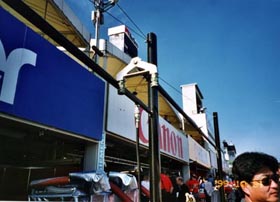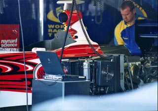 ピットウォークは45分一発勝負だ。俺としては28時間くらい見ていたいのだがなぁ。BARを見終わった頃にタイムアップになり(11時だ)、ピットロード出口側から綱引きのひものようなものをもったサーキットスタッフ達が「さあ、終わりだよ、戻った戻った」と言わんばかりに押し寄せてくる。オーストラリアGPでは楽器を手に、演奏しながらの”追い出し”らしい。お祭りなんだから、これくらいの余裕が無いとね。
