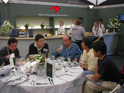 なんとすごい人が来たもんだ。Sさんは今回はプライベートでグランプリに来たらしいが、BARの所に行くと上司がいるので近づかないようにしているらしい。しかしどんなツテでロックタイトのパス仕入れたのだろう? 明日からエンジンとシャーシのフィッテングでイギリスのBAR本拠地まで行くそうである。かっちょええぞ。かっちょよすぎだ。