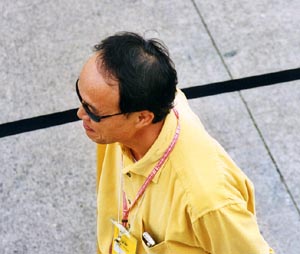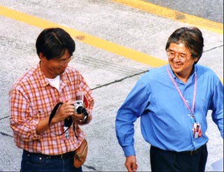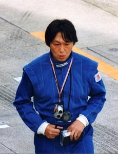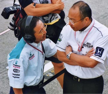 おお、左は元ホンダの監督、後藤さんだ。ザウバーカラーはなんとなく似合わないなぁ。右にいるのは無限のチーフエンジニア・坂井氏だ。何を話しているんだろう? 「坂井さんさぁ、ちょっと昔のコネでホンダのノウハウ流してよぉ」なんて言っているこたぁないな。