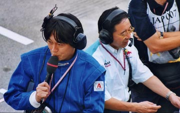 ちょっとカッコ悪い耐火スーツを着たピットレポータの川井ちゃん。似合わんぞ。