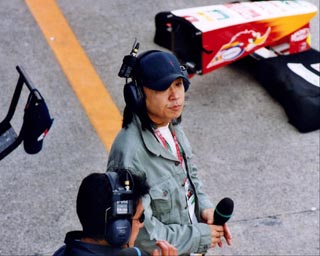 決勝を目前にしてピットロードの様子が違うのに気がついた。そうだ、レースモードに入っているのでテレビクルーやメカニックなどの関係者もすべて耐火スーツをまとっているのだ。94年からレース中の給油がOKになったが、火災の心配があるのでメカニックはすべて耐火スーツ着用だ。何度かの火災を経験した結果、こんなに仰々しい格好になってしまったのよ。