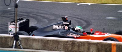 と言っていたら、もう一台とろとろ走っているミナルディーのバドエル。プスプス煙が出ていると思ったら