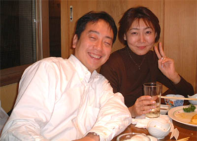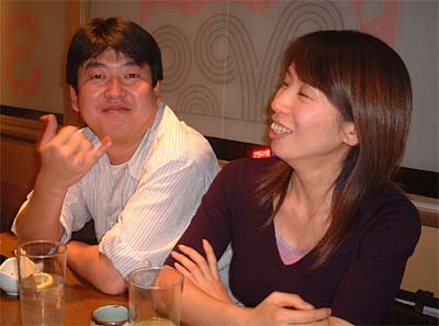 で、もう一人ハッピーなお方が。この人なぜか女性に受けます。某T社長に「歩くとライムライトの風が舞う」などと評され、一時期の流行語にまでなったTさんも新婚さんです。初対面の女性には照れまくってしまう私は新妻さんとあまりお話が出来ませんでしたが、PC使い系の匂いがしましたので、これから慣れるにしたがって話させてもらいましょう。しかし皆さん若い女性をゲットされていいですのぉ・・・(あっ、若いだけがいいって言う意味ではないですよ)