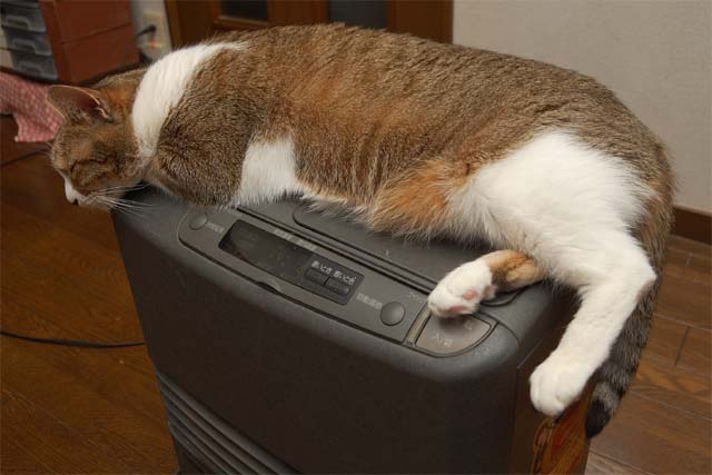 ◆♪ね〜こはコタツで丸くなる〜 ではなく ね〜こはファンヒーターの上でのびのびる〜 であります。