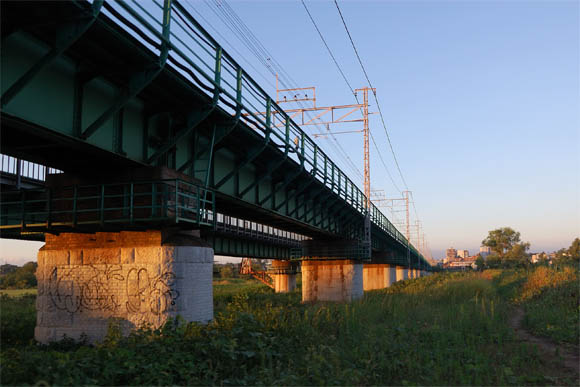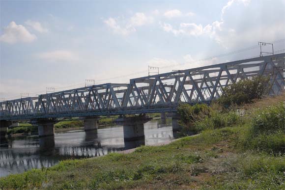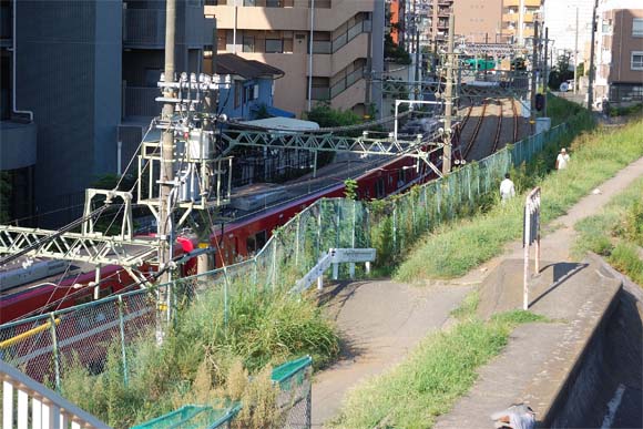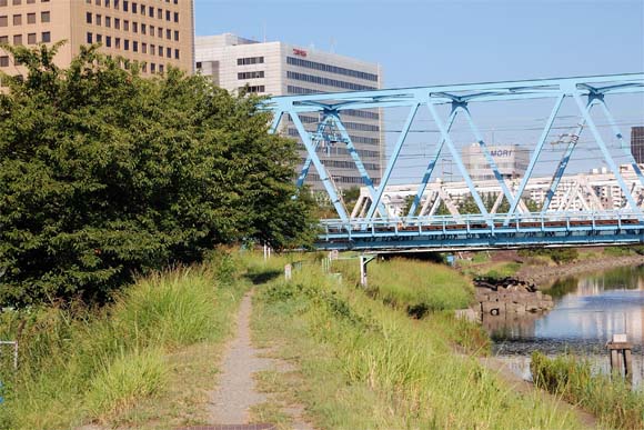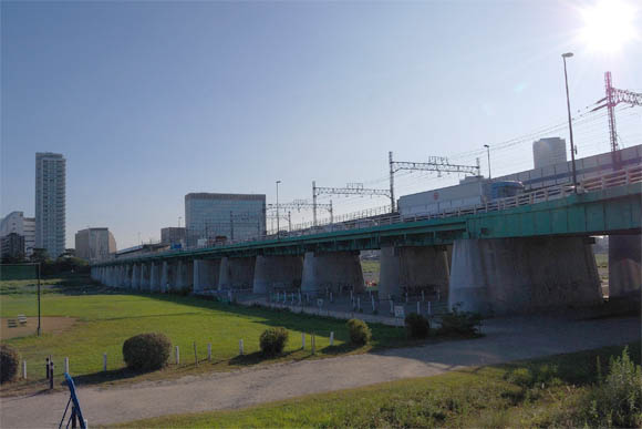 次なる橋はJR東海道/京浜東北である。ここは電車で東京出張の時、窓から広がった風景がいい感じのところだ。自転車は府中街道脇の歩道を走行する。