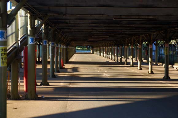 そろそろ行き止まりかなぁ?と思いながら工事中のところを抜けていくと、おもむろにターミナルが現れた。おお、ここは第2ターミナル・ビックバードではないか? なんだか感激である。しかしターミナル前には「自転車通行可/ここまで」とある。これで終わり。時刻は9時ちょっと前だ。