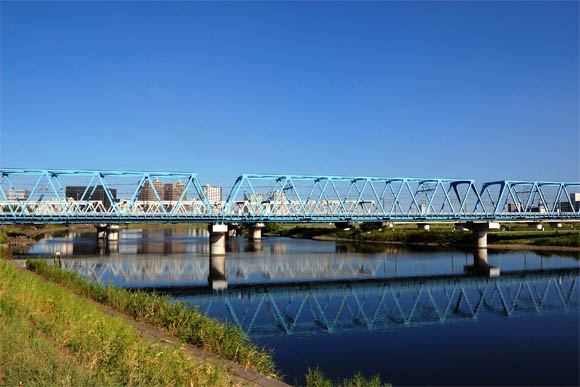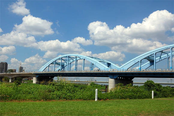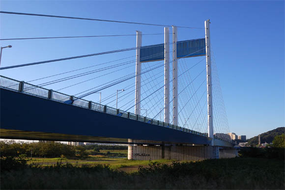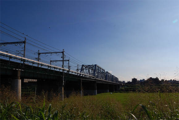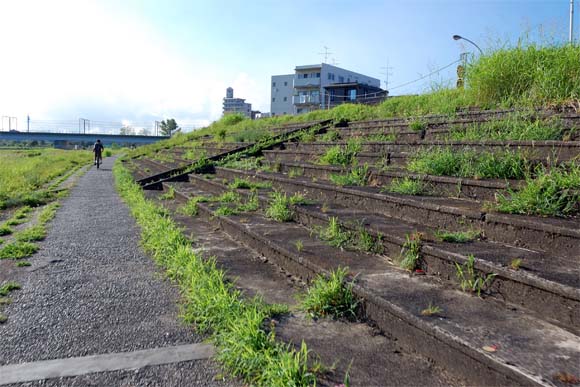 続いて二子橋/東急田園都市線。ところでどの橋もその下をくぐるのは似たり寄ったりである。土手ロードは高さがあるのでそのままでは橋をくぐれない。したがって河川面まで下がるのだが、そのまま下るところと、山岳道のように急なS字のように戻って距離を稼ぎながら下るところを二つある。後者はバックするようでなぜか肌に合わないのである。