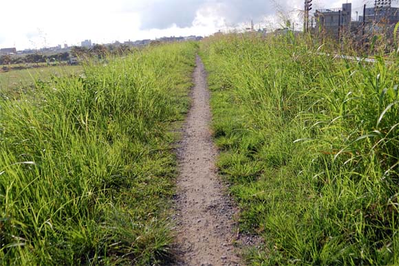 砂利道にブルーになりながら少し進むと「通行禁止」という看板に出くわした。土手道を工事しているらしい。が、工事が続いている感じが全くしなくて放置工事プレイだ。おいおい、しっかりしてくれ川崎市! しょうがないので一般道を走ろう。