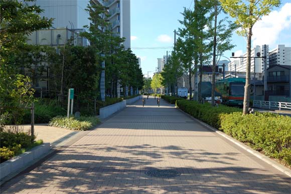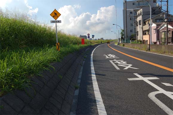 これが左側、広くて走りやすい。右側神奈川エリアは工場地帯だったが、左側東京エリアは住宅地、面白い対比だなぁ。