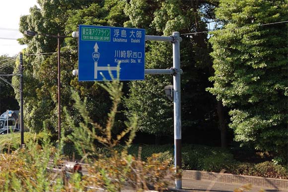 まあ土でも砂利でもいいのだが、ちょっと走ったら土手道が終わってまたまたさっきの幹線道路(府中街道)に戻ってしまった。恐るべき川崎側。でもアクアラインとか浮島とか書いてあると、なんだかちょっと萌えますなぁ。