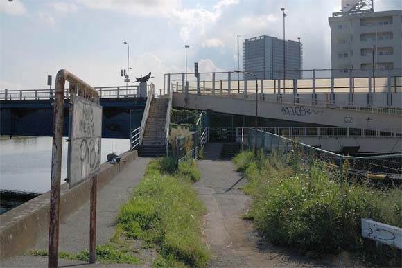そして最後の橋である大師橋(産業道路/首都高羽田線)にたどり着いた。ここから先は右側を走っていると行き止まりになってしまうので左側に渡るのである。