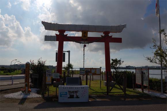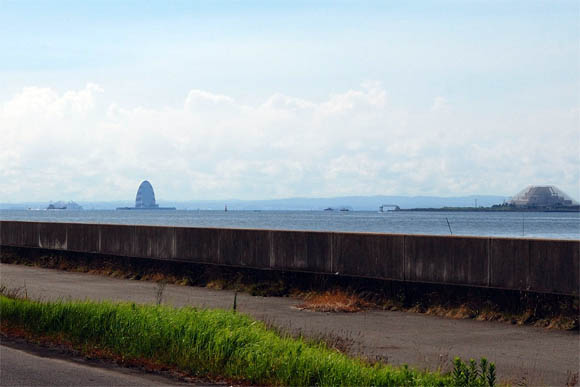 右の玉川河口付近を見ると、向こうにアクアラインが見えた。多摩川右側をずーっと走っていたら行き止まりになってしまうので行かなかったが、浮島までは車でいけるんだからアクアラインがすぐ近くに見えてもなんら間違いではない、というのが分かるのである。ちなみに先ほどの国際線ターミナルの対岸当たりが自転車でいける最終地点だ。ヨドバシの倉庫があるところ。