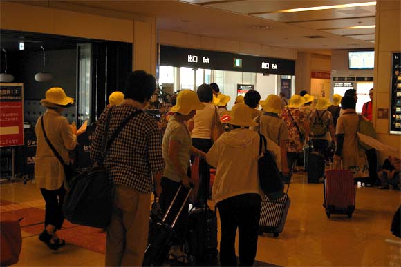 「う〜ん、最高!涼しい!」のと、空港の高揚感が混ざったこの感じ。なんともいえない。乗り込んだ1Fは到着ロビーである。なのでなんとなくさびしい感じ。明かりを全体的に暗く演出しているのもその理由だろう。どこかにツアーで行ったおばあちゃんたちが同じ色の黄色い防止をかぶってにぎやかにしている。