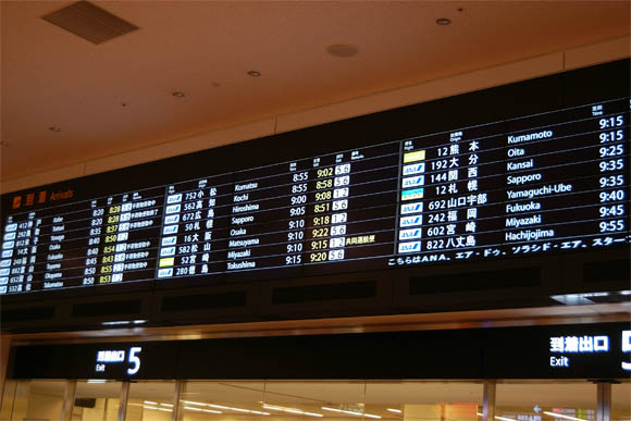 到着案内ボードも「空港!」って感じでいいぞいいぞ。あっ、山口宇部行き・・・これ昔何度も乗った便だ!ねっ、大○さん。