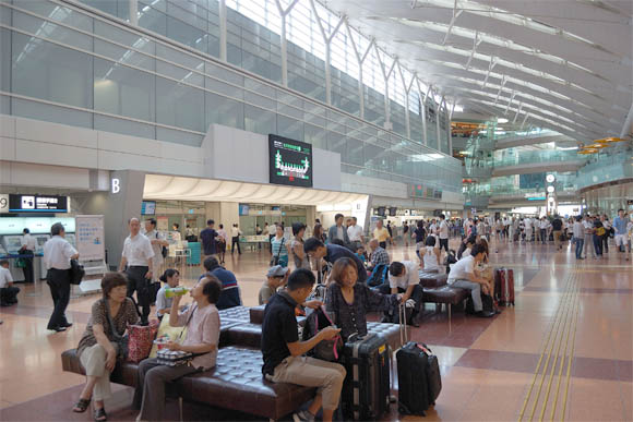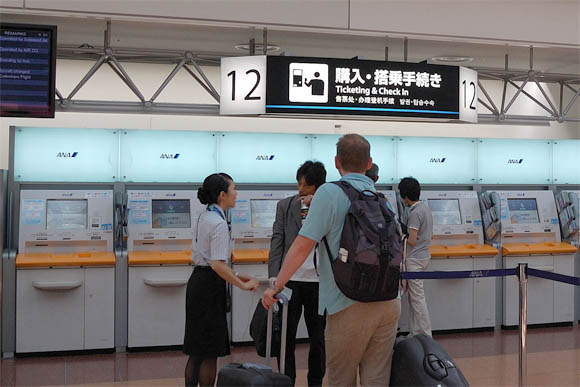 自動チェックインカウンターの前には地上クルーのお姉ちゃんががんばっている。日テレあたりのニュース番組の後半コーナーとかで、「密着新人地上クルー/合格できるか?」なんてキャッチフレーズでやっているやつだな。でも最近は病院の会計も機械でやるらしし、スーパーやディスカウントストアなんかもセルフ会計だったりする。これ作っているところ儲かっていそう・・・