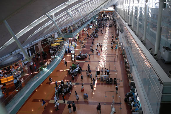 2Fに行ってみると、「おお、やっぱり空港はこの感じだ」。出発ロビーは明るいし人が多いし、こらから飛行機乗るのよ、旅立つのよ、旅行よ、という「気持ちの高揚感」がフロアを満たしている。ビンビン伝わってくる。本当に「気」というモノはあるのだなぁ。