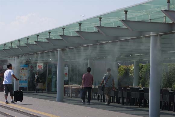 展望デッキにはミスト噴射がされていて涼をさそうのだ。いいぞいいぞ。