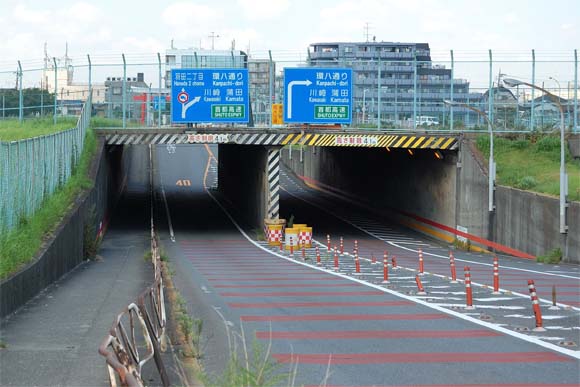 そしてトンネルを出たところはT字路になっている。「あ、首都高湾岸線だ。ああ、なんかこんなところまで来たんだ!」という感慨深い思いに浸ることなく、これをまたげるのか?とGoogle Mapsで調べてみると、大きく右側を迂回すれば良いらしい。道路があるところでは最も海に近いところだ。その先には滑走路しかないのである。