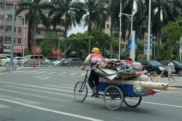 中国では3輪自転車に大量の荷物を載せているとか、アメリカ人が日本人はみんな羽織/袴でちょんまげを結っているというくらいの「思い込み」があったが、広州ではそんな光景は全く見なかった。が、シンセンでは結構想像の中国が見れた。やはり広州は大都市で、泊まったところもその中心だったからかなぁ。